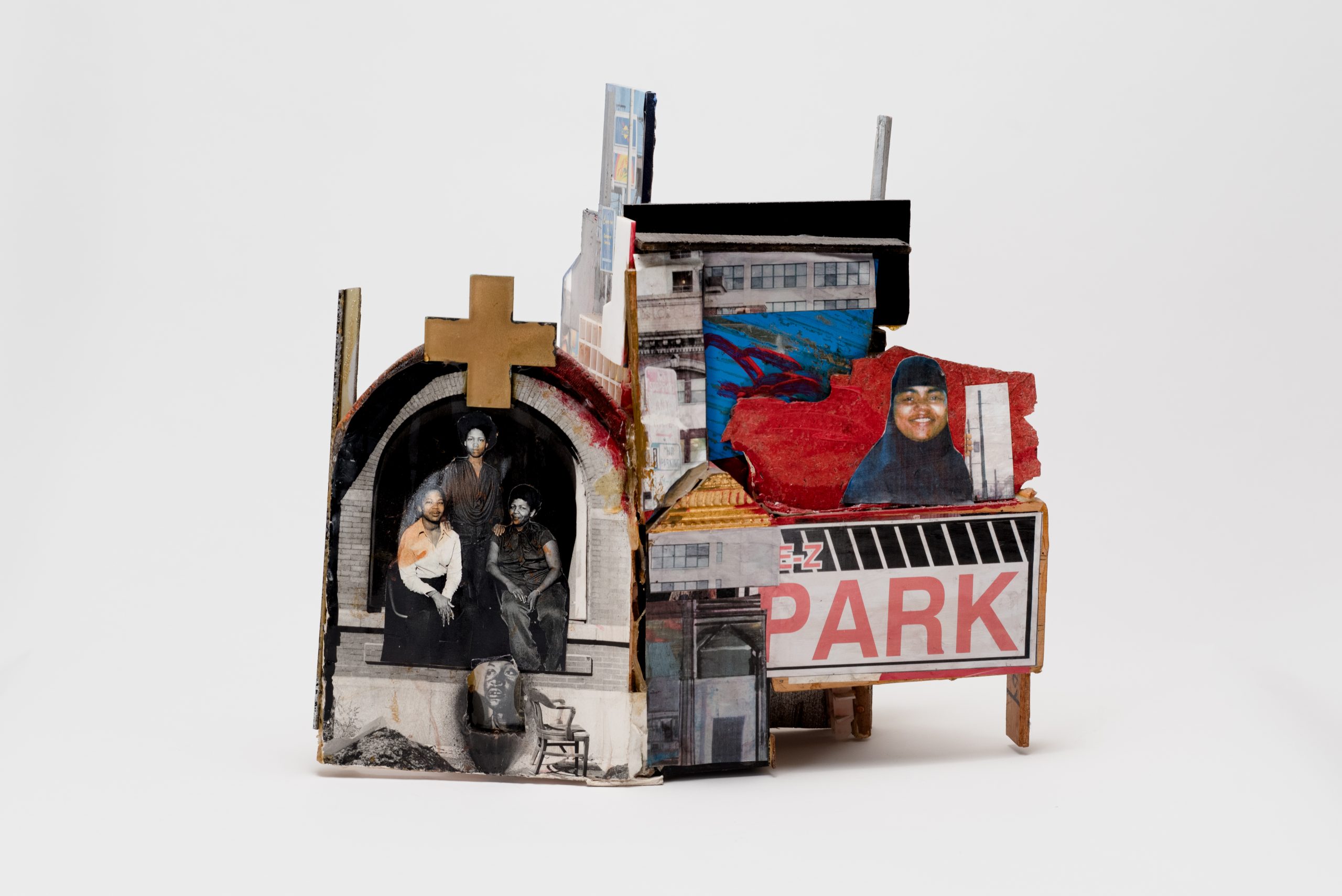 Leroy Johnson, EZ Park, c. 2005 – 2010 Mixed media, found objects, collage40.6 x 43.8 x 22.2 cm Inquire Exhibitions Condo at The Approach, London, UK