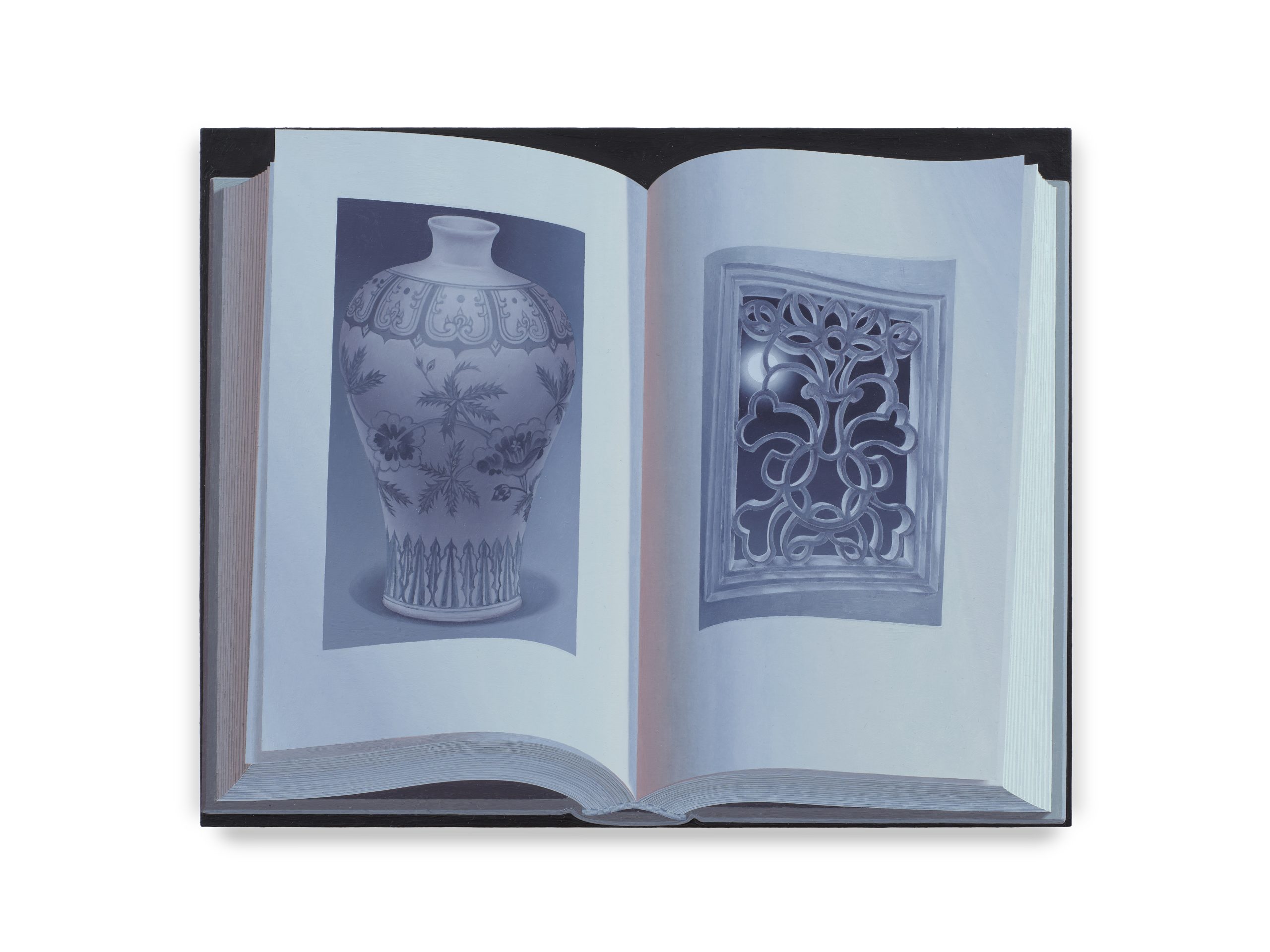 Olivia Jia, Night reading (Ming vase and moon through a garden window), 2025 Oil on panel20.3 x 25.4 cm Inquire Exhibitions Mirror stage